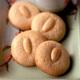 Bateti albusurile pana obtineti o spuma ferma care se tine bine de tel. Adaugati zaharul pudra si bateti incontinuu. Adaugati sucul de lamaie, apoi migdalele macinate, coaja de lamaie si amestecati ingredientele pentru omogenizare. Puneti cate o lingurita de amestec pe o hartie de copt, lasand spatiu intre gramajoarele de amestec. Adaugati pe fiecare gramajoara de compozitie cate o migdala curatata de pielita maronie. Fursecurile se coc la foc potrivit, in cuptorul preincalzit, la 160 °C, timp de aproximativ 20 minute.