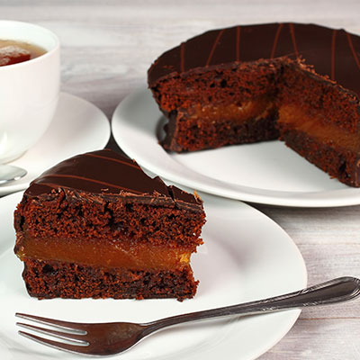 Ungeti un blat cu gemul de caise trecut prin sita. Puneti deasupra al doilea blat. Turnati peste acesta glazura preparata anterior si racita la temperatura camerei. Puneti tortul pe un platou, in frigider, pentru cel putin 3 ore, pana cand se intareste glazura. Scoateti tortul din frigider cu o jumatate de ora inainte de servire.