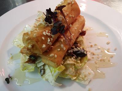 Radeti branza de capra, mixati-o cu cimbrisor si rulati 3 pachetele de primavara apoi prajiti-le.